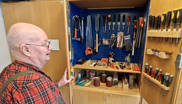 Efter mötet visar Tomie Eriksson och hans snickarkompisar runt i slöjdsalen.
